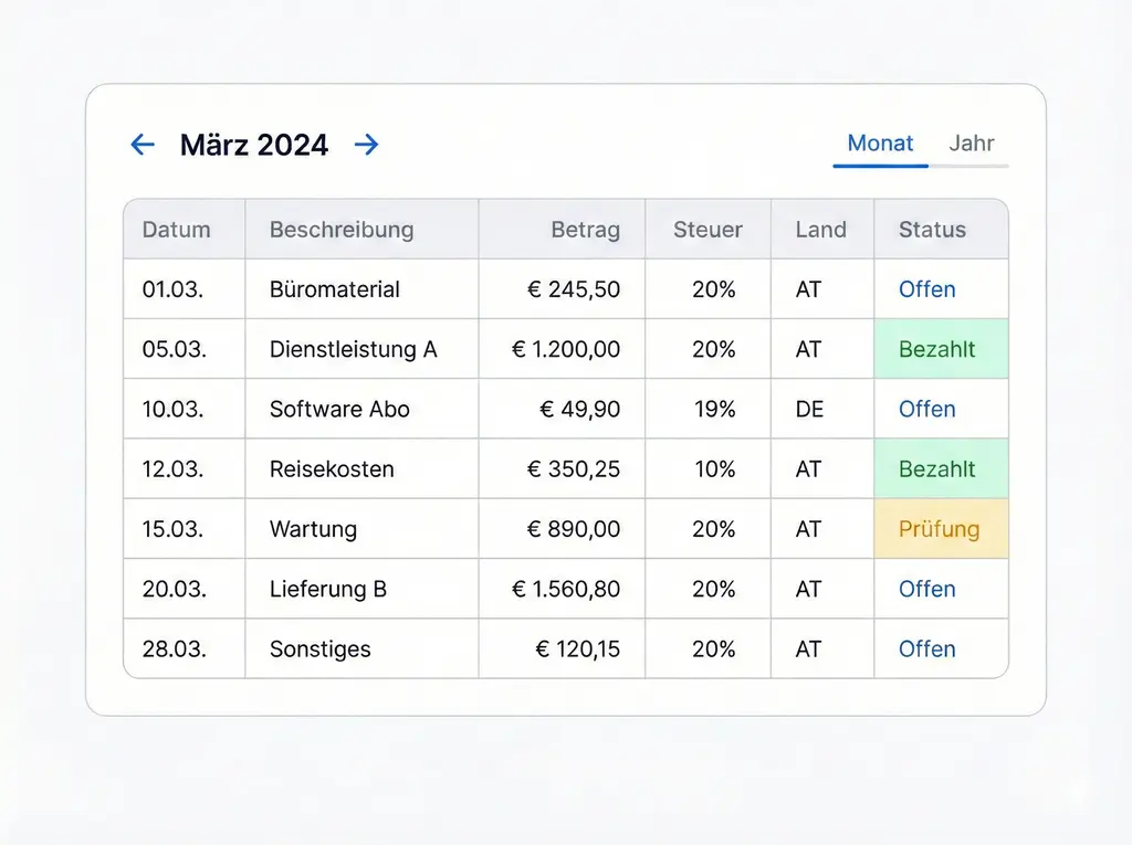 Erstellen Sie ein Konto mit Nur-Berichte-Zugang für Ihren Steuerberater. Er lädt herunter, was er braucht, wann er es braucht. Keine monatlichen Datei-Austausch-Rituale mehr.